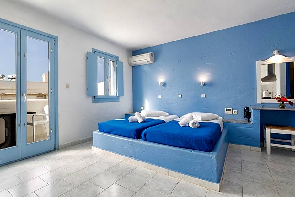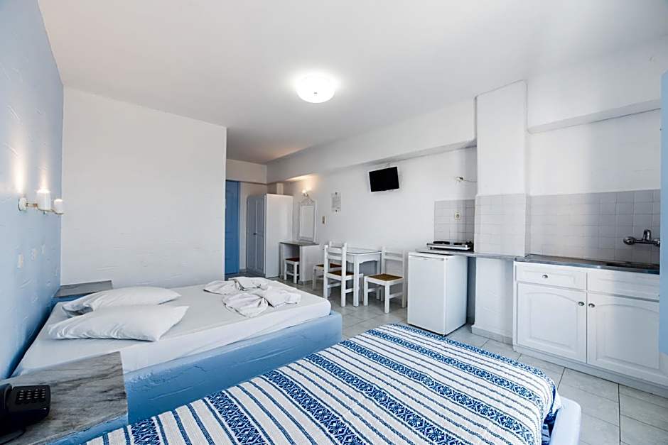 Including a kitchenette with fridge and oven with cooking hobs, the studio opens up to a balcony overlooking the neighborhood. Please note that this room type does not offer sea view.
